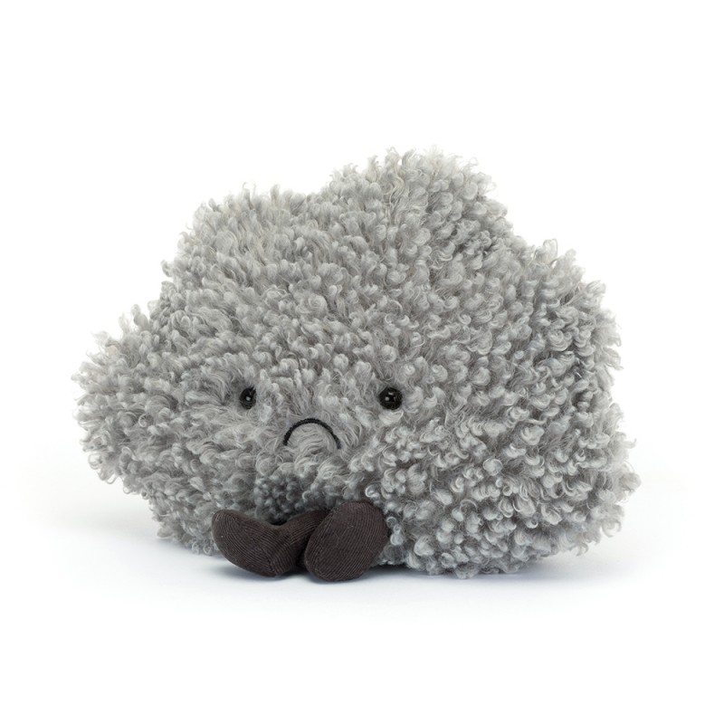 Our Jellycat Amuseable Storm Cloud might look overcast, but everyone who sees this fluffy grump smiles! With tufty grey fleece, charcoal cord boots, embroidered frown and beany base, this cloud has hugs for gloomy days.